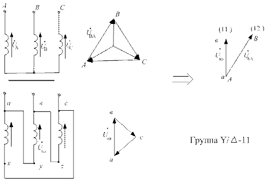 4. Схема соединения Δ/Y (рис. 2.47). Магнитная система любая.