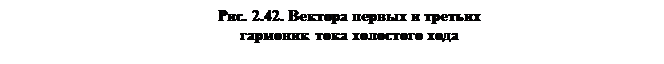 Таким образом, третьи гармоники каждой фазы и гармоники, кратные трём, в каждый момент времени будут совпадать по фазе (рис. 2.42), и поэтому они выпадают из кривой тока холостого хода, и кривая тока холостого хода будет приближаться к синусоиде.
