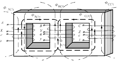 Особенности режима холостого хода трёхфазных трансформаторов или явления, возникающие при намагничивании трёхфазных трансформаторов