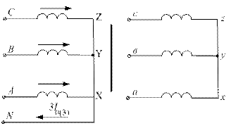 Таким образом, при наличии токов нулевой последовательности сумма токов трёх фаз отлична от нуля. Отсюда следует, что в трансформаторе токи нулевой последовательности могут возникать только тогда, когда хотя бы одна из обмоток имеет нулевой провод (или при заземлении нулевой точки).