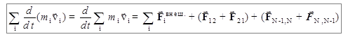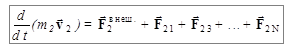 , действующие между частицами системы, т.е. силы внутренние. Запишем уравнение второго закона Ньютона для каждого тела рассматриваемой системы:
