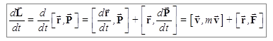 Выясним, какая физическая величина определяет изменение вектора момента импульса. Для этого найдем производную по времени от вектора