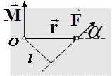 Первое слагаемое в уравнении (3.15) тождественно равно нулю как векторное произведение двух коллинеарных векторов. Второе слагаемое в (3.15) называется моментом силы, и это есть векторное произведение радиус-вектора, проведенного в точку приложения силы, на эту силу (рис. 3.2):