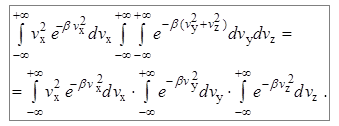 Выражение (7.13) представляет собой произведение трех одинаковых интегралов, поэтому в выражении (7.13) появляется множитель 3. Оставшееся выражение также равно произведению трех интегралов – по переменным v x, v y и v z: