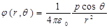– вектор, направленный от отрицательного заряда к положительному, длина которого равна расстоянию между зарядами диполя. Потенциал диполя на больших расстояниях определяется по формуле
