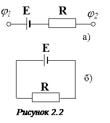 Допустив в формуле (2.10) j1=j2, получим выражение закона Ома для замкнутой цепи (рис.2.2, б):