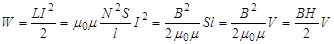 В последнем выражении мы также учли, что Sl=V – объём соленоида и B=m0mH. Мы знаем, что магнитное поле сосредоточено внутри соленоида и однородно.Это означает, что энергия магнитного поля распределена по соленоиду так же однородно с объёмной плотностью