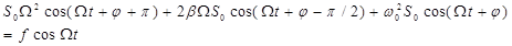 С пока ещё неопределёнными S0 и j. Таким образом, задача нахождения частного решения свелась к определению амплитуды и фазы колебаний. Чтобы определить их, подставим решение (4.46) в исходное уравнение (4.43). В результате получим