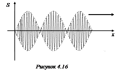 Простейшей группой волн является квазисинусоидальная плоская волна, получающаяся в результате наложения двух распространяющихся вдоль оси х плоских волн с одинаковыми амплитудами и близкими по значению частотами и волновыми числами: