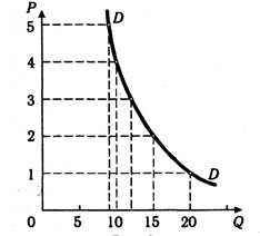 Такое изображение соотношения между рыночной ценой товара и денежным выражением спроса на него называется графиком спроса или кривой спроса (D — от слова demand — спрос). На графике кривая DD отлого опускается. Это кривая иллюстрирует закон падающего спроса. Суть этого закона состоит в том, что если цена какого-либо товара повышается при неизменности других условий рынка, то спрос на этот товар уменьшается.