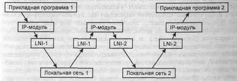 Рисунок 11.1 Загальна схема руху IP-пакета (LNI — інтерфейс локальної мережі)