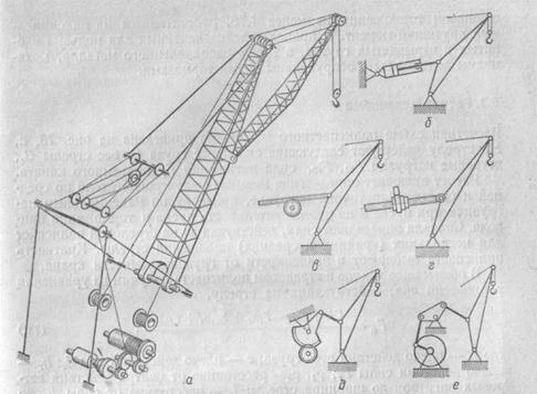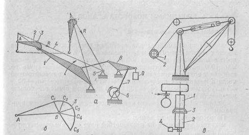 Механізми зміни вильоту гойданням стріли бувають наступних типів (мал. 77):