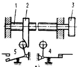 На шайбі встановлені вмикаючі 14 і вимикаючі 17 кулачки, що викликають вмикання або вимикання контактів 13 ланцюгів управління.