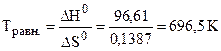 Следовательно, при температуре примерно 696,5 К начнется реакция восстановления Fe2O3. (“Примерно” потому, что при решении задачи мы не учитываем слабую зависимость DН и DS от температуры). Иногда эту температуру называют температурой начала реакции.