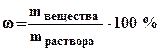 1. Массовая доля (процентная концентрация) (ω) - отношение массы растворенного вещества к общей массе раствора (выражается в процентах или в долях единицы):
