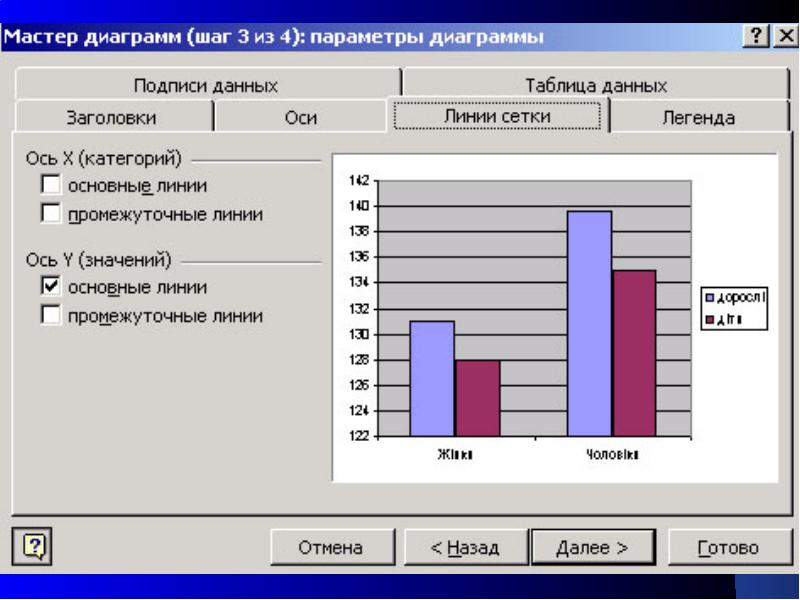 Линии сетки – керування видимістю ліній координатної сітки діаграми.