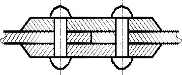 Вузькі і довгі площі перерізу (наприклад, штампованих, вальцьованих і інших подібних деталей), ширина яких на кресленні від 2 до 4 мм, рекомендується штрихувати повністю тільки на кінцях і у контурів отворів, а іншу площу перерізу - невеликими ділянками в декількох місцях (мал. 6.11 і 6.12).