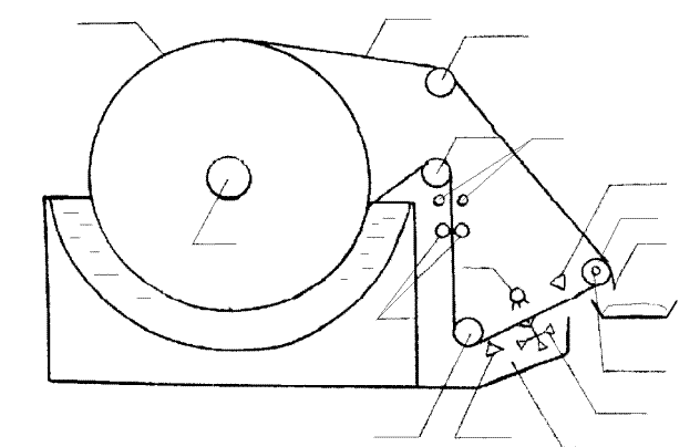 У корито безупинно подається скоагулированный осад. При зануренні обертового барабана в корито осад під дією вакууму подсасывается до поверхні фильт-ровальной тканини. При виході барабана з корита осад під дією вакууму підсушується. Фільтрат під дією вакууму безупинно віддаляється в ресивер. У міру обертання барабана фільтрувальна тканина разом з осадом переходить на систему роликів (регенераційний вузол). Кек, що утворився на поверхні фільтрувальної тканини,при проходженні через отдувочно - розвантажувальний ролик знімається ножем. Для полегшення зняття кека виробляється отдувка кека повітрям. Після зняття осаду фільтрувальна тканина промивається із двох сторін водою, що подається з насадок 9 й 12. У деяких випадках передбачається додаткове очищення тканини щіткою, вращаю-щейся в напрямку протилежному напрямку обертання тканини, при одночасному додатковому промиванні тканини водою вступник із трубопроводу із щілиною. Промивна вода попадає в жолоб і приділяється в каналізацію. Очищена тканина повертається на поверхню барабана. Фильтроцикл повторюється.
