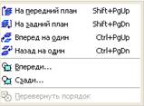 Все действия по изменению порядка наложения объектов можно выполнить с помощью команд меню Компоновать – Порядок.