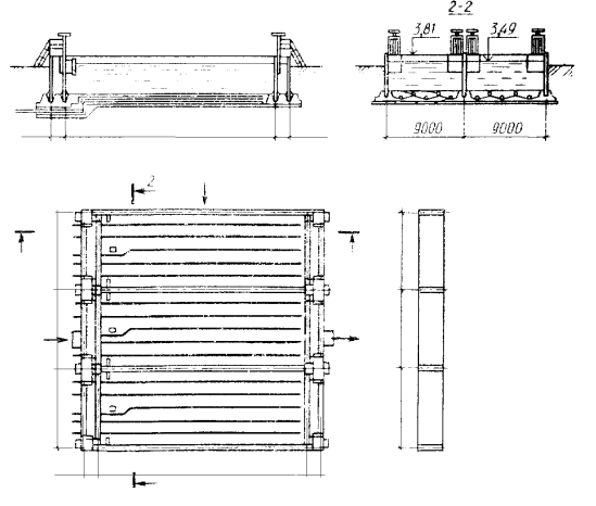 Найбільше поширення знайшла конструкція ЦНИИЭП, застосовувана при QСУТ > 25 тис. м3/доба. Особливістю конструкції є ребристе днище в лотках якого розташовані трубопроводи. По поздовжніх стінках змонтовані аератори з перфорованих труб. Осад віддаляється 1 раз в 5-7 доби. Відключається секція, осад взмучивается технічною водою, що надходить із насадок й осад перекачується на площадки. Під час перекачування суміш аэрируется для підтримки часток у зваженому стані.