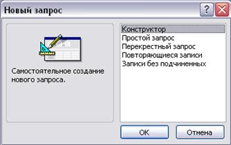 2. Натиснути кнопку Создать. З’явиться діалогове вікно Новый запрос (рис. 8).