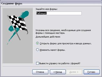 3. Далі виконувати вказівки, які з’являються у вікнах майстра. Завершивши процес створення форми, майстер дозволяє відкрити форму з даними, які вона містить, або в режимі форми, або в режимі конструктора.