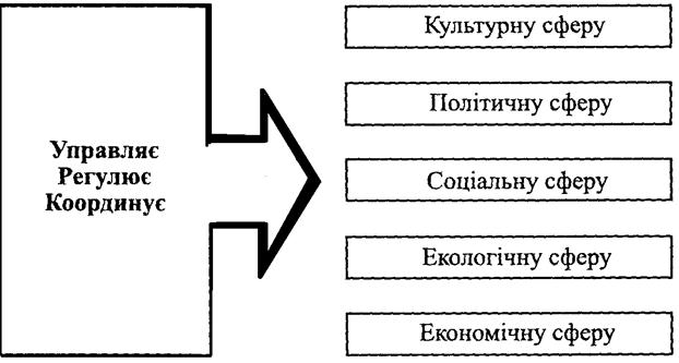 Рис.1. Сфери впливу держави на складові суспільної системи