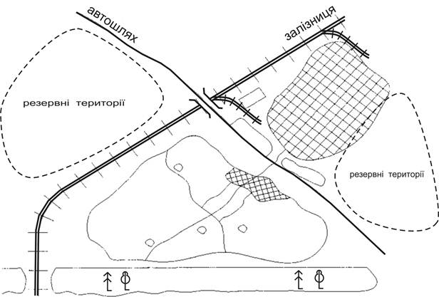 б)підзона зовнішнього транспорту. 3.Ландшафтно-рекреаційну зону.