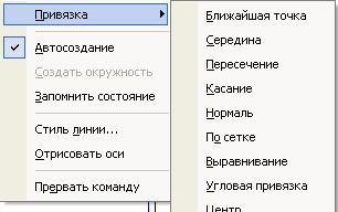 Щоб скористатися локальною прив’язкою при побудові чи редагуванні об’єкта, потрібно викликати з контекстного меню команду Прив’язка, її підменю – це перелік локальних прив’язок
