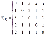 рівний відстані між вершиною i і вершиною j. Для графа, показаного на мал. 12.1, матриця відстаней має наступний|слідуючий| вигляд|вид|: