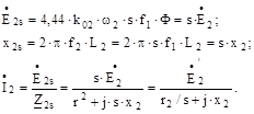 тут k01, k02 – обмоткові коефіцієнти відповідно статора й ротора; w1, w2 — число витків обмоток відповідно статора і ротора; w1 – кутова швидкість обертання магнітного потоку статора; L1, L2 – індуктивність обмотки статора й ротора відповідно; x1, x2 –індуктивні опори відповідно статора й нерухомого ротора.