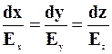 Оскількиградієнт потенціалу спрямований убік його зростання, а чисельна величина градієнта є мірою швидкості цього зростання, то напруженість електричного поля є мірою зменшення потенціалу. Лінії напруженості збігаються з силовими лініями. Складові елемента довжини d силової лінії за осями координат dx, dy, dz пропорційні складовим Ex, Ey, Ez вектора Е