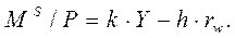 Тепер звернемося до рівняння кривої LM, яке відображує рівновагу на грошовому ринку в малій відкритій економіці з абсолютною мобільністю капіталу. Оскільки за цих умов r = rw, то рівняння, яке відображує рівновагу на грошовому ринку, слід записати так:
