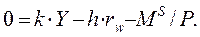 Але рівняння (16.9) не відповідає ідеології моделі Монделла - Флемінга. Це пояснюється тим, що в даному рівнянні пропозиція грошей виконує роль ендогенної змінної, тоді як в дійсності вона є екзогенною змінною. Інші чинники рівняння (16.4) також не можуть бути ендогенними змінними рівняння кривої LM. За цих умов криву LM може адекватно описувати лише таке рівняння, яке відображає рівновагу на грошовому ринку без ендогенних змін: