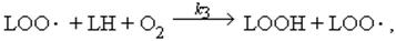 - В присутствии кислорода воздуха радикалов LO· и L· гораздо меньше, чем радикалов LOO·; поэтому реакциями 4 и 5 можно пренебречь оставив только одну реакцию взаимодействия радикалов - реакцию 6.