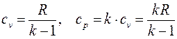 Из формулы Майера (2.25) и определения показателя адиабаты (2.26) могут быть найдены удельные теплоёмкости