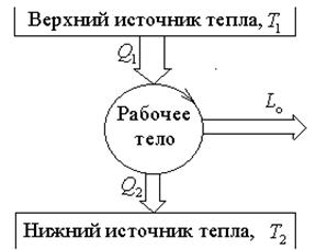, определяемый отношением полезной работы, полученной в двигателе за цикл, к затраченному теплу от верхнего источника за этот же цикл, т.е. по определению:
