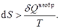 Это неравенство говорит о том, что изменение энтропии вещества в любом необратимом процессе всегда больше приведённой теплоты этого процесса.