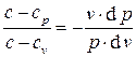 Разделяя переменные в этом уравнении и интегрируя, получаем связь между давлением и объёмом в политропном процессе в виде: