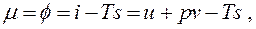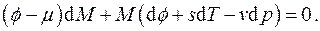 Найдём связь химического потенциала с другими потенциалами системы. Для этого рассмотрим в (4.12) четвёртое из выражений. Свободную энергию Гиббса Φ, энтропию S и объём системы V запишем через их удельные величины: