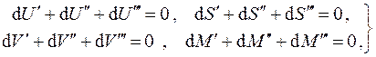 Так как все дифференциалы здесь независимы и значения их произвольны, находим условия равновесия: