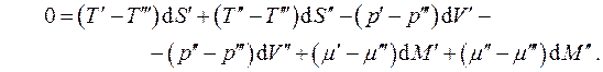 , множители в скобках при этих дифференциалах должны быть равны нулю, откуда получаем условия термодинамического равновесия искомой системы: