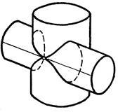 ПОЛНОЕ ПЕРЕСЕЧЕНИЕ (рис. 6.3) - все образующие одной поверхности пересекают все образующие другой поверхности. В результате получаются двезамкнутые ветви пространственной линии.