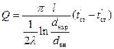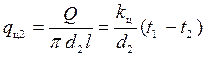 Плотность теплового потока, отнесенная к внутренней или наружной поверхности, определяется по уравнениям