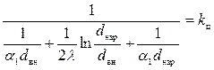 , обратную коэффициенту теплопередачи, называют полным линейным термическим сопротивлением теплопередачи через цилиндрическую стенку: