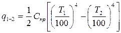 Тепловой поток, передаваемый от первой поверхности ко второй (без экрана), определяем из уравнения: