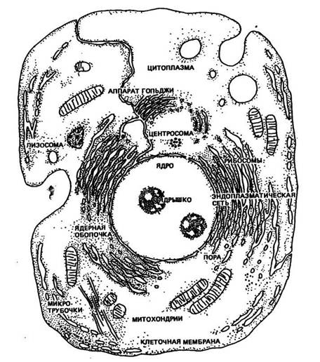 Рис. 1. Схема строения животное клетки по данным электронной