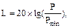 Pmin – звуковое давление на пороге слышимости; Pmin = 2×10-5 Па на частоте 1000Гц.