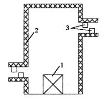 1 – источник шума; 2 – звукопоглощающий материал; 3 – глушитель шума
