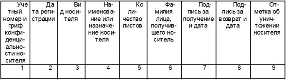 Магнитные и оптические носители, предназначенные для отображения (фиксирования) конфиденциальной информации, должны учитываться подразделением конфиденциального делопроизводства до нанесения на них информации в журналах (карточках) учета машинных носителей конфиденциальной информации, в которые целесообразно включать следующие графы: